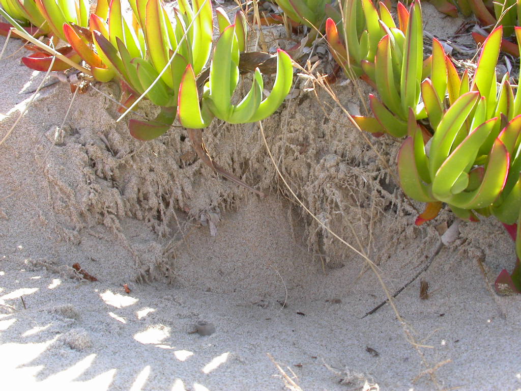 Tra le radichette del cosiddetto fico degli Ottentotti si trovano specie interessanti che trascorrono le ore più calde annidandosi tra la sabbia, in mezzo al reticolo di radici: con un piccolo setaccio si possono rinvenire facilmente. Rispettivamente un esemplare di Ammobius rufus e Trachyscelis aphodioides: