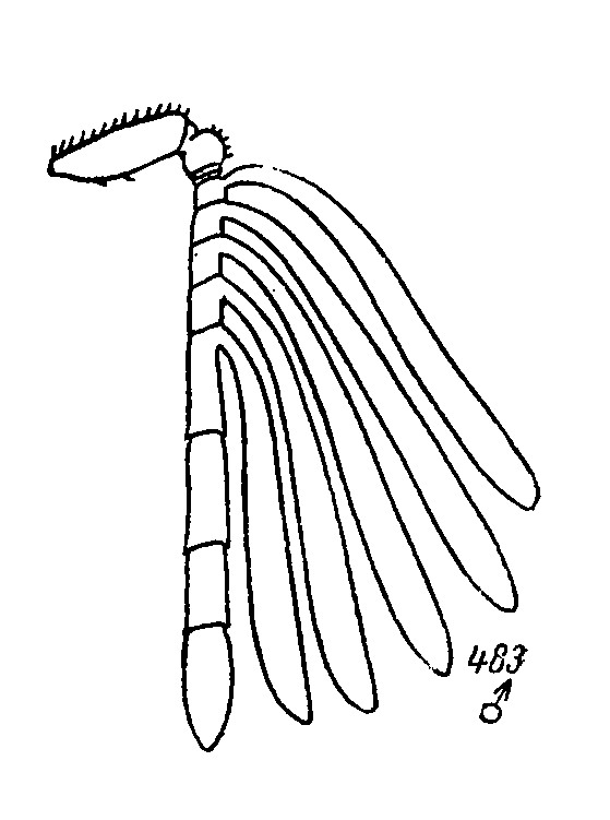 Beh, ho detto che le antenne di Pnigalio pectinicornis erano abbastanza simili perchè avevo notato che c'erano solo tre antennomeri e non cinque come in questo caso. Al contrario, Pentacladia suggerisce cinque, come il disgno allegato, quindi suona molto più convincente. Purtroppo non ho trovato immagini di questo genere, quindi non si riesce a confrontare l'habitus, è un peccato.