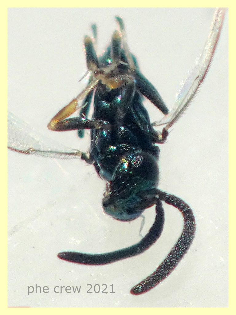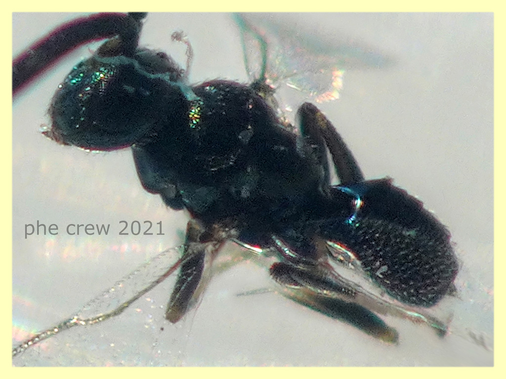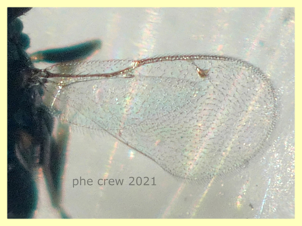 ... stavo leggendo un po' di post sui Pteromalidae qui sul forum e ho notato che anche nel mio esemplare ci sono le "palle"  come in questo post: viewtopic.php?f=553&t=34692&hilit=Pteromalidae.... dunque probabilmente è proprio un Pteromalidae....ah nella foto dell' ala ialina c'è da precisare che sotto si vede quella più piccola.