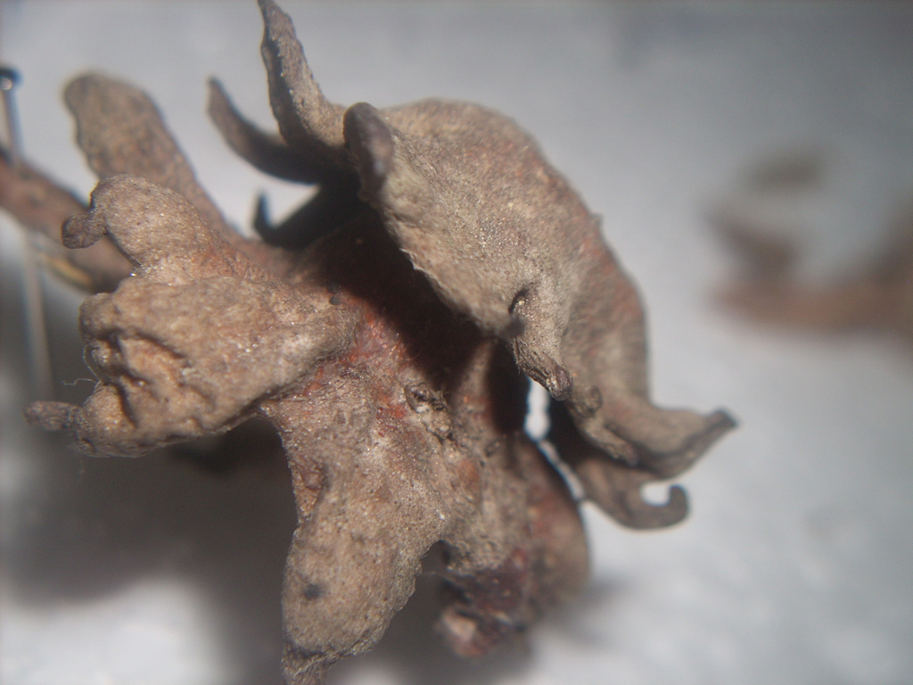 Oggi ho trovato una galla di Andricus conificus e per mio errore è entrata in contatto con un po' di aceto e si è sfatta giù. ANzi che si è salvata la celletta contenente la larva.