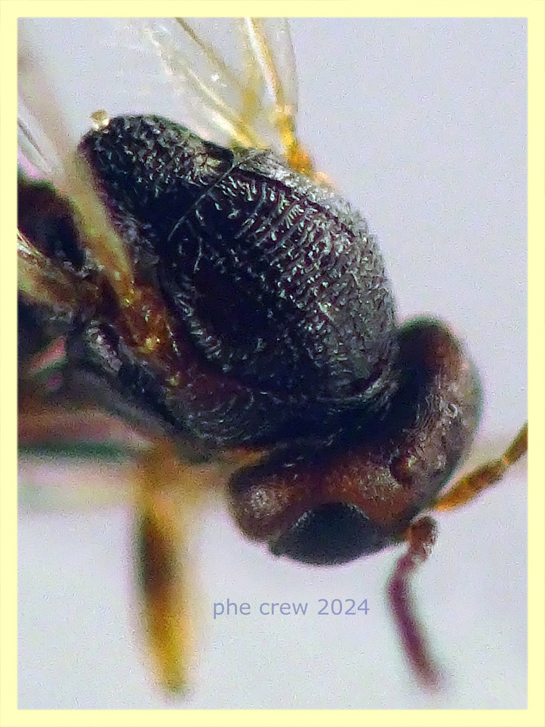 ...dopo lunghe ricerche, credo di aver determinato questo soggetto uscito da Ghiande raccolte alla base di una Quercia. Sembrerebbe una femmina di Callirhytis erythrocephala...misura 2,5 mm. Ho trovato poi un pdf che confermerebbe (almeno cosi' sembra a me) questa specie....eccolo: