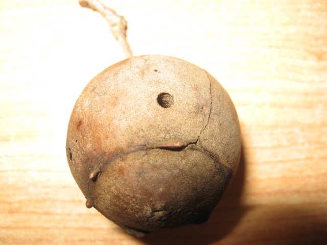 Sulla strada che conduce dal paese di Cesarò al lago d' Ancipa, si entra in un fitto querceto misto; ai piedi di una Quercus dalechampii (presente, in Italia, solo in Sicilia, Calabria e Sardegna e poche altre zone), forse un ibrido fra roverella e rovere, ho trovato una galla ormai "usata". Si riesce a capire a quale specie appartenga?
