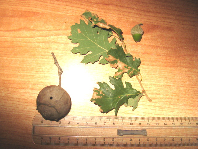 Galla, foglie e ghianda di Quercus dalechampii Ten.