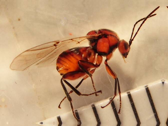 il genere probabilmente è Andricus, ma per questo gruppo è già difficile distinguere le specie al binoculare! Se ti è possibile, mostraci qualche scatto che permetta di osservare il capo in vista frontale e il torace dall'alto per osservare alcuni caratteri del mesonoto e scutello.