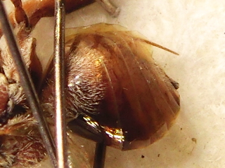 Salvatore ecco una foto dell'addome, si vede poco la (scarsissima) peluria proprio all'estremità dell'addome.