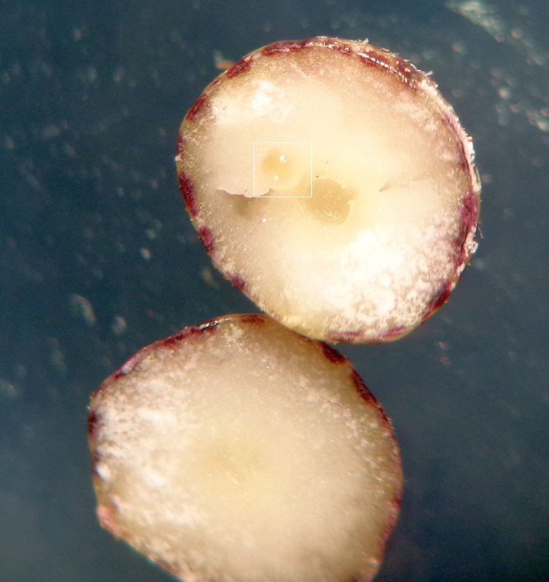 Ho effettuato un campionamento con un telo di 6 metri quadrati sotto una giovane farnia, e in meno di 10 giorni ho raccolto oltre 4000 galle (quattromila!). considerando che il telo copre meno della metà della chioma della pianta ospite è facile azzardare che basta un boschetto per produrre milioni di galle… La “cascola” delle galle, come frutticini maturi è una strategia per sottrarsi alle terebre dei parassitoidi. A differenza delle altre specie sorelle che hanno diversificato stratagemmi strutturali di contrasto agli aculei nemici, le galle di Neuroterus anthracinus trovano riparo nelle lettiera del sottobosco. Qui le larvette consumano il tessuto amidoso che ci ha illustrato Giorgio nella galla sezionata. Poi se la lotta con le ife fungine e altri predatori della giungla del suolo sono sconfitti, la femmina agamica emerge dalla galletta e si invola verso le gemme autunnali quiescenti per “infestare” la quercia più vicina.