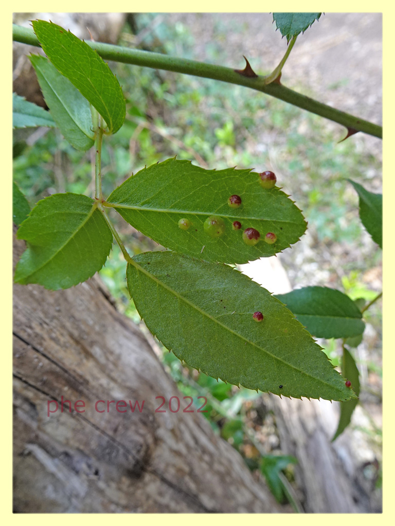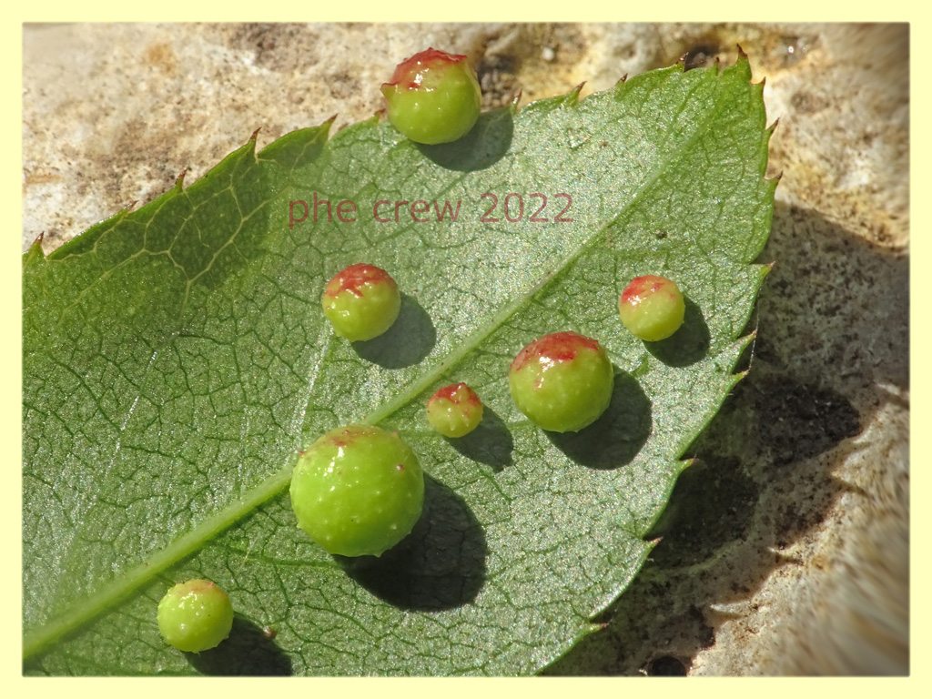 ...ho trovato queste Galle su delle foglie di una pianta rampicante spinosa….chi sara' l' inquilino ?