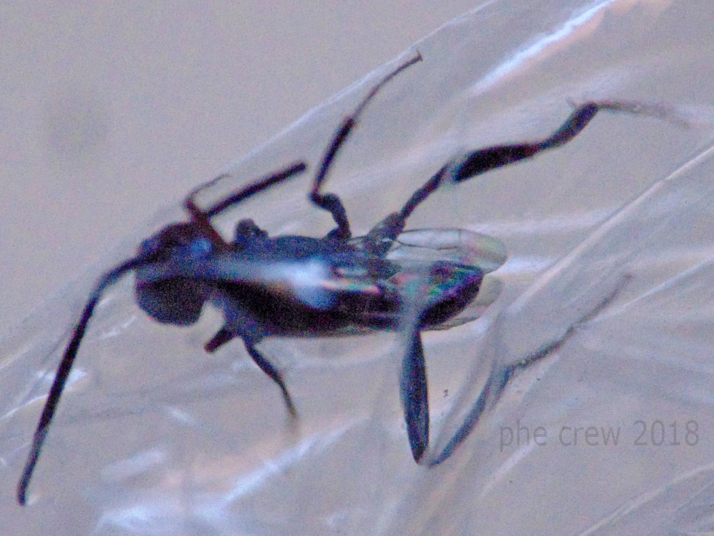 ...allora... premettendo di averlo trovato gironzolante sulla tenda della porta-finestra, penso che mi sia sfarfallato da una delle scatole con i rametti secchi o di Fico o di Alloro...non penso dal Cirsium perché il coperchio ha buchi troppo piccoli, dunque penso che sia un Imenottero parassita di larve legnifughe. Purtroppo ho fatto foto pessime, (ma spero che si arrivi almeno alla specie) perché non si fermava un attimo !!!...giuro !....ho tentato di tutto l'ho inscatolato e aspettato per ore che si stancasse, ho cercato di invischiarlo su un leggero strato di marmellata mentre camminava per tenerlo fermo, l'ho persino avvolto nel cellophane ma nulla...si dimenava come non mai e cercava di aprirsi un varco con le affilate fauci (vedere foto). L'unica ....era porre fine a queste torture ! ....uccidendolo  ma chi mi segue da tempo sa che faccio foto in natura e non uccido insetti...Dopo tanta fatica sono riuscito a capire (per le svariate e originali vie di fuga) che mi trovavo davanti ad un insetto molto intelligente nonostante i sui 5 mm. (senza antenne)....bene ecco le brutte foto: