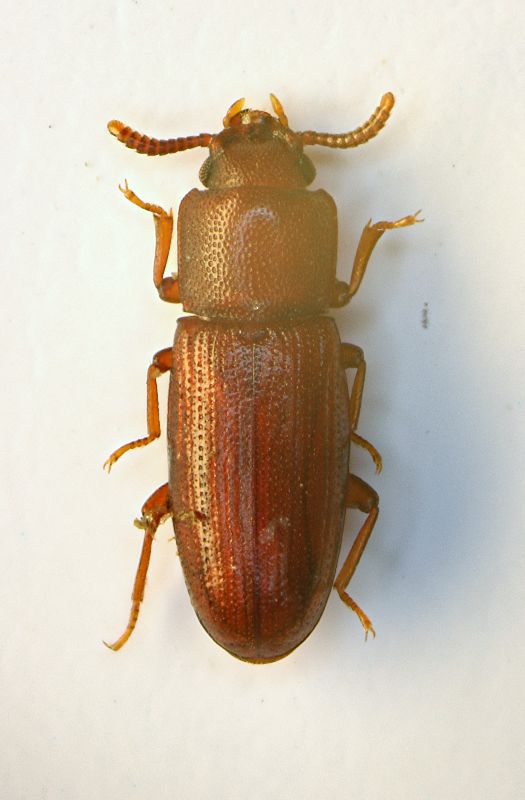 Infine ho controllato l'ennesimo tronco abbandonato, questa volta dico con una certa sicurezza che si tratta di un ippocastano Sotto la spessa corteccia mi è subito balzato agli occhi questo grosso tenebrionide che, guardando un po' in rete ho immaginato potesse essere un Accanthopus velikensis (Piller & Mitterpacher, 1783) Oltre a questo, controllando più da vicino, il tronco era pieno di un Silvanide molto diffuso, la Uleiota planata (Linneo, 1761) Infine, dopo non vi assillo più, ecco l'ultimo incontro....davvero abbondante (Cucuidi) Placonotus testaceus (Fabricius) Un saluto a tutti voi, pazienti lettori Loris