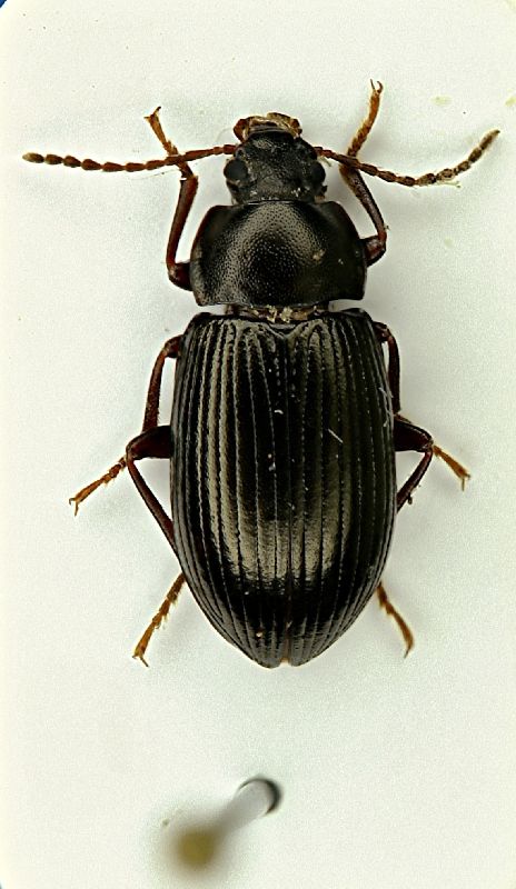 ...solo per questo esemplare, mi posso azzardare a proporre la specie: Ptinus (Gynopterus) sexpunctatus Panzer, 1789 Quasi casualmente, mentre scortecciavo ho notato che ai piedi di alcuni grossi platani, crescevano rigogliosi "ciuffi" di muschi (o licheni, non so) Esaminando la corteccia marcescente al di sotto di questo muschio (e solo in questo ambiente) ho trovato in gran quantità uno splendido Anthribide (spero), mai incontrato prima. Ed insieme a questi Anthribidi, ho raccolto anche un paio di minuscoli Throscidi Continuando con i platani, mi sono poi imbattuto in un Tenebrionide già presentato e quindi determinabile: Palorus depressus (Fabricius, 1790) Uno stafilinide, probabilmente uno Xantholino continua....