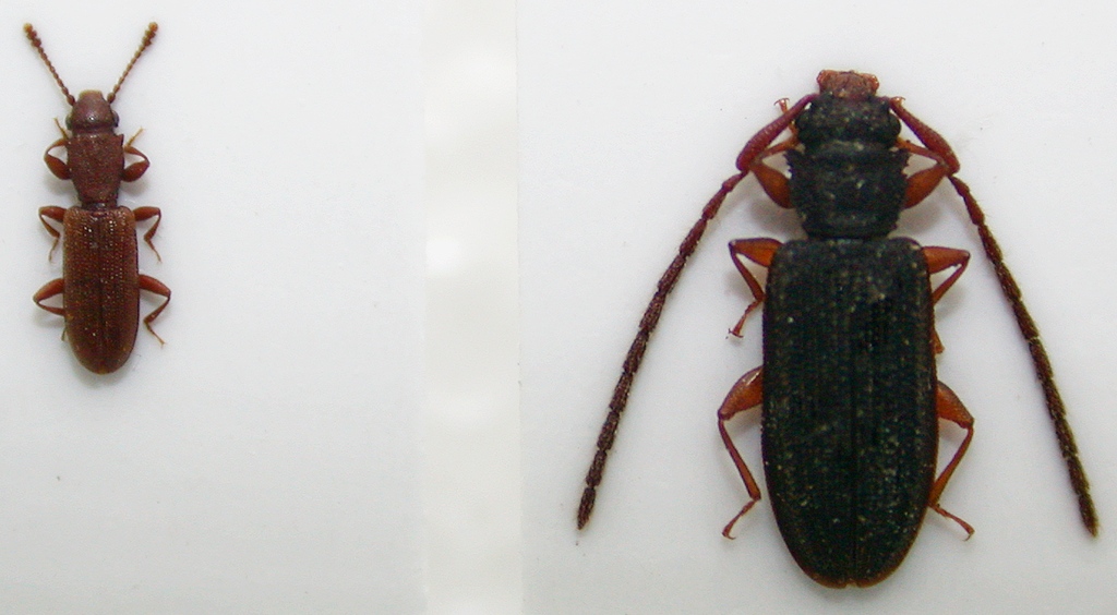 I due Silvanidi che trovo più comunemente sotto corteccia (Silvanus unidentatus e Uleiota planata)