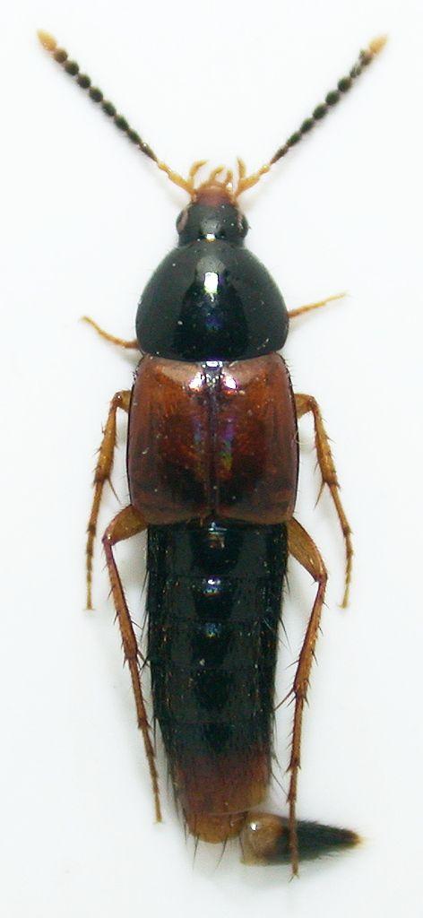 Staphylinidae Aleocharinae Tachyporinae Mycetoporini; 9mm (ma si è un po' ritirato)