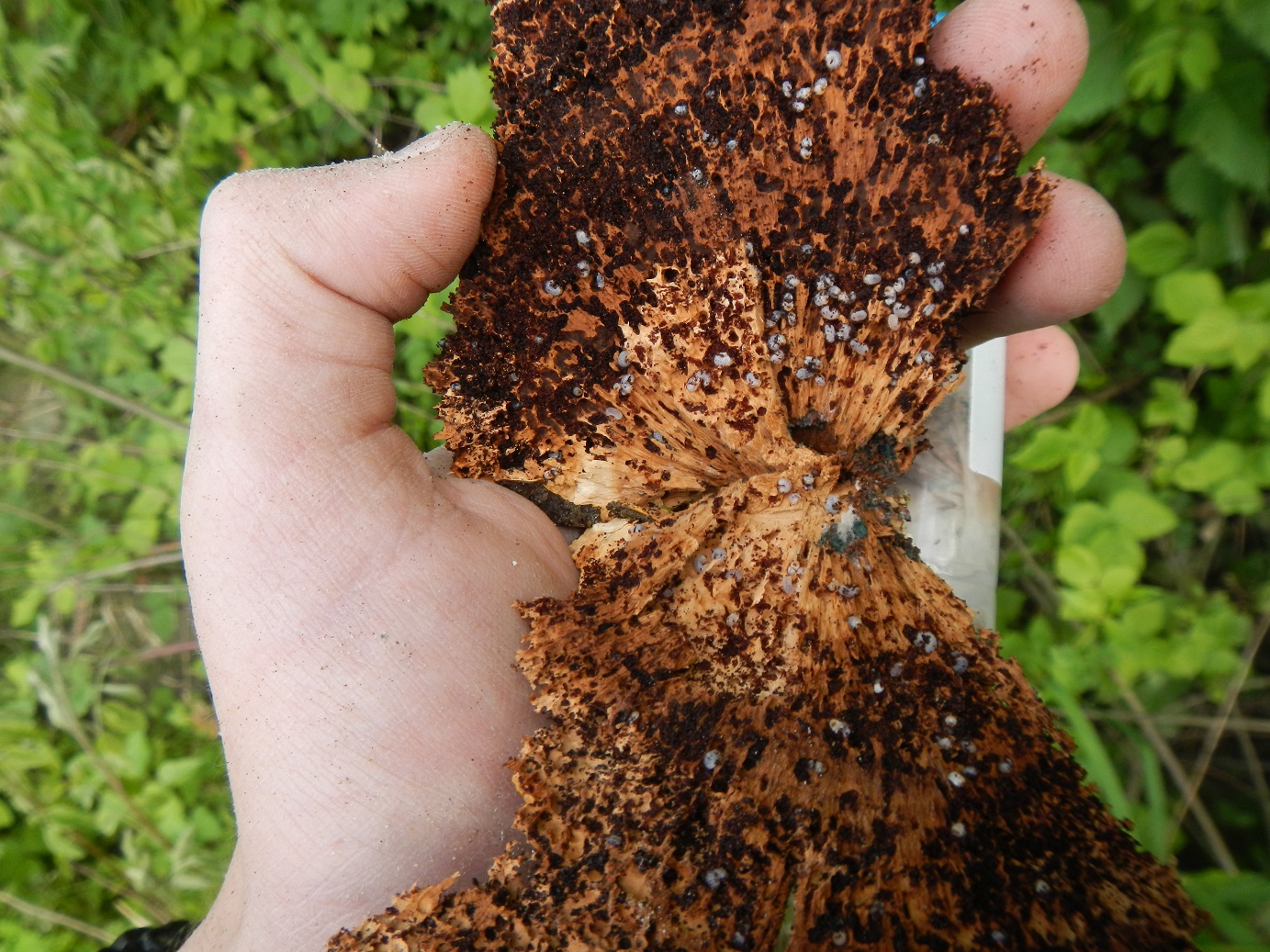 Aprendo un fungo attaccato ad uno di quegli alberi a destra noto una intensa infestazione di queste larve di coleottero. Cosa potrebbero essere?