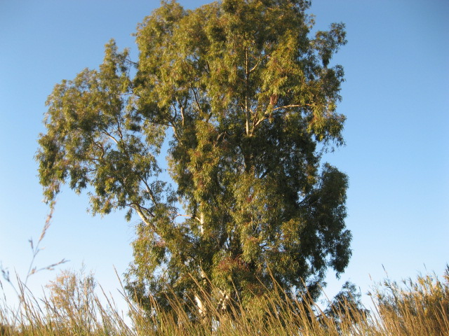 Quegli alberi li ho visitati per provare a scortecciarli (gli eucalipti), ma ho visto che nascono direttamente in riva al fiume: il canneto (impenetrabile, ci ho messo tantissimo per attraversarlo... :dead: ) dà l' illusione di essere su una superficie piana, ma invece dopo un pò c' è un dislivello che arriva fino al fiume: in questo dislivello vi sono gli alberi, di cui in foto si vede solo la parte superiore. Ho visto però altri alberi isolati situati in una zona meno "scomoda" :gh: : comincerò a lì! :ok: