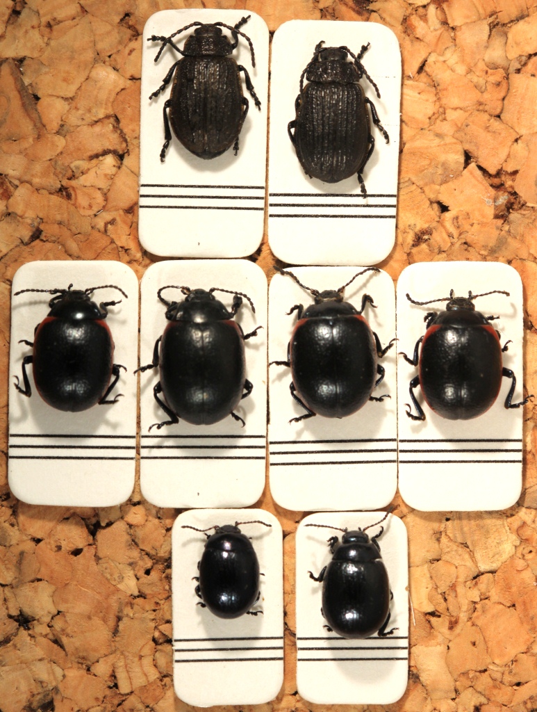 Le seconde in batteria sono Chrysolina rossia mentre, le terze, probabilmente, Chrysolina haemoptera. Per dare un nome alle Galeruca, serve una foto del pronoto in modo da vedere se “l'angolo (anteriore) non è rialzato, tipo orecchie d'asino nei quaderni dei bambini” (riporto questa calzante definizione data da Maura, che sarebbe da porre in calce ad una chiave dicotomica di carattere pratico).