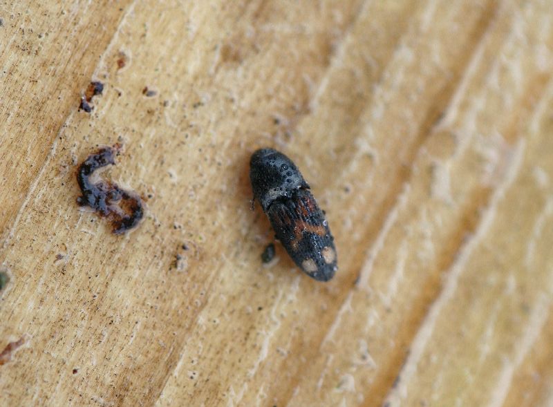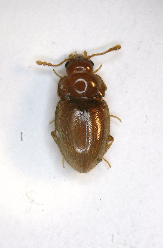 Arriva anche un altro Anthicide, comunissimo ovunque, ma che io non trovo quasi mai: (Hirticomus quadriguttatus (Rossi, 1792) ..poco prima di abbandonare gli "amati" Platani, ecco le ultime sorpese: un minuscolo coleottero (1,3 mm.) di cui non riesco a dirvi di più... ...e un altro "misterioso" rinvenuto già cadavere (e da un pezzo !). Bestiola mai vista prima, penso possa essere un Anobide, del genere Dorcatoma E' il momento di cambiare aria e questa volta vorrei andare a vedere il grande parco a ridosso del parco, zeppo di piante "aliene" (c'è pure una Sequoia !). Sotto (la corteccia) di un grande Ippocastano ecco un altro Coccinellide ...seguiti da due (forse) Phalacridi. Il primo potrebbe essere del genere Phalacrus