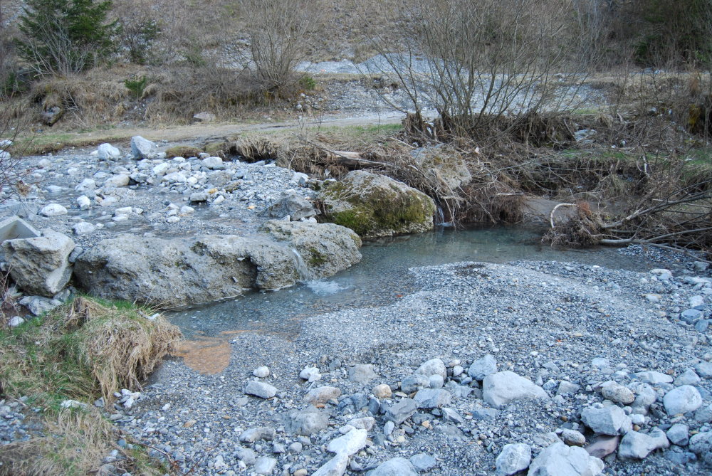Nella foto che hai denominato "affluentone" si notano dei ciuffi di piante secche (graminacee ?) che sono a ridosso del greto, quasi in bilico sul letto del fiume.