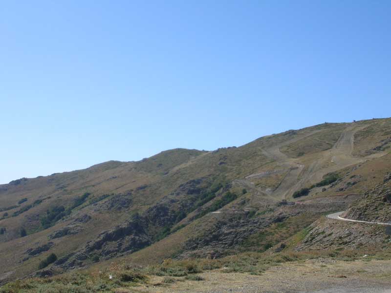 Versante di Fonni. Nella devastazione delle piste da sci (sic !) si riconoscono le "righe" verdi egli ontaneti.