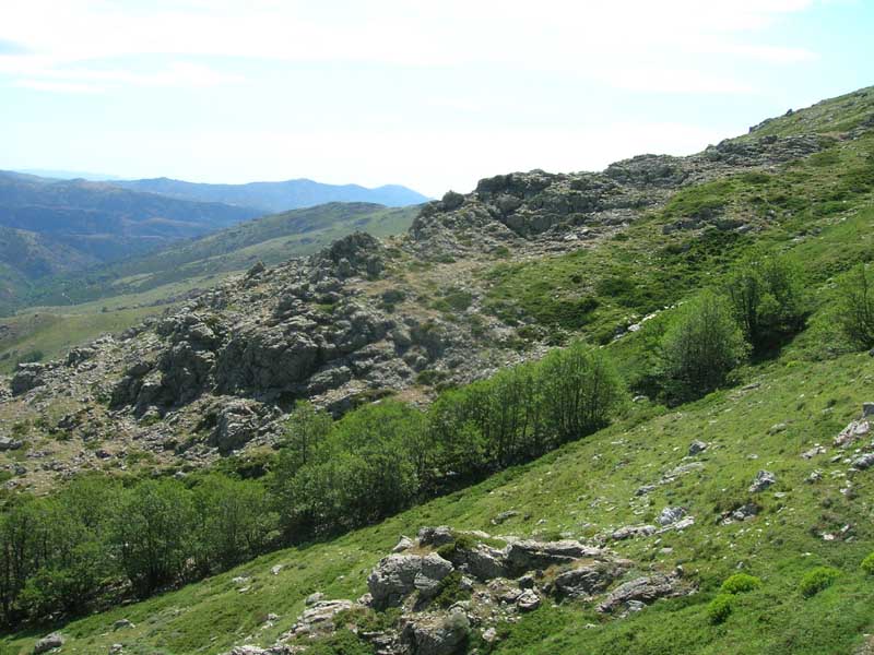 Vi propongo un ambiente ripario assolutamente particolare. Siamo subito sotto il Bruncu Spina, tra i 1500 ed i 1650 metri sul livello del mare. La montagna, possente ma morbida, consente l'accesso alle normali autovetture e troviamo due rifugi, quello di Fonni (anche se poi non è sito nel territorio comunale di Fonni) ad est e quello di Desulo ad ovest. Per un gioco di creste e pendenze, nonostante i due versanti l'esposizione di entrambi è pressapoco nord-est. A queste quote non salgono gli alberi. Arbusti prostrati di ginepro nano dominano il paesaggio. Ma, dove i torrentelli di quota hanno scavato dei canaloni, l'ontano nero risale e risale lungo i corsi d'acqua, nelle gole, arrivando appunto sui 1700 m slm e strisciando di verde un territorio altrimenti brullo.