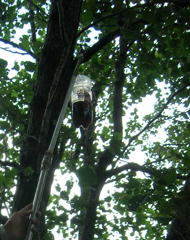 I metodi di cattura sono stati tre: Fasce trappola Normalmente disposte come in foto, una in un tronco principale ed una in una branca. Due alberi per ontaneto, due ontaneti per versante. Trappole a vino Ad un'altezza di 2-3 metri dal suolo. Due trappole per ontaneto, due ontaneti per versante. Trappole a caduta Posizionate con qualche problema, quella in foto non è infatti ben interrata. Due trappole prossime agli ontani, due tra i ginepri, come al solito ripetute per ciascuno dei due ontaneti dei due versanti. Roberto