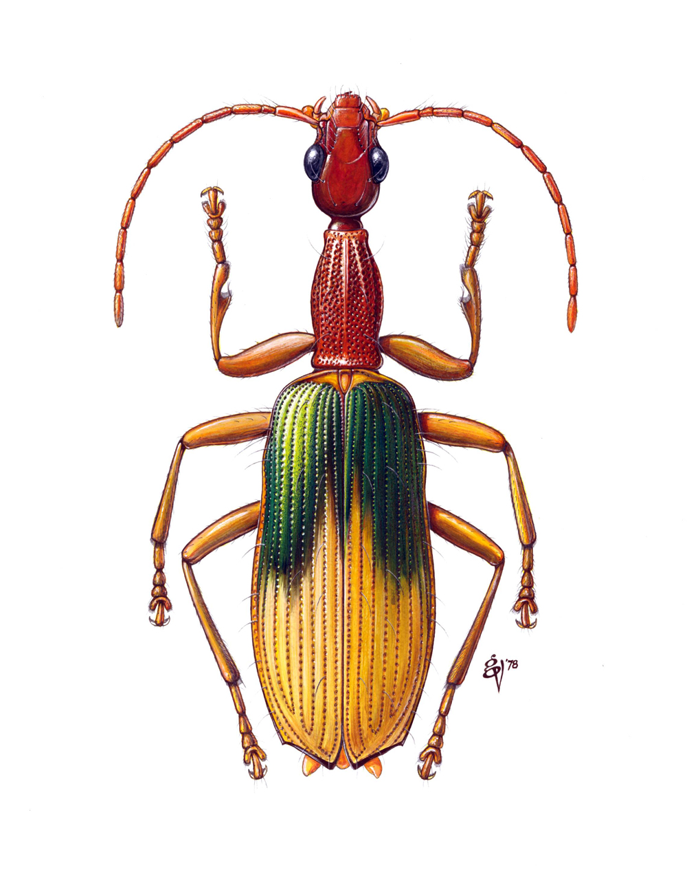 L’illustrazione delle nuove specie che quotidianamente vengono descritte è ormai affidata quasi totalmente all’immagine fotografica, che, con l’affinarsi della tecnologia, sta raggiungendo di giorno in giorno risultati sempre più sorprendenti. Ma non si può negare che i disegni a mano e le tavole a colori che impreziosiscono i contributi apparsi nei decenni e nei secoli passati, ma anche in contributi recenti, mantengano comunque inalterato tutto il loro fascino. Molti di questi “dipinti”, a parte l’indubbio valore scientifico, rappresentano, a mio avviso, delle vere opere d’arte. Fino ad alcuni anni fa, questi tesori erano custoditi solo nelle biblioteche pubbliche e nelle collezioni private e la loro consultazione era sempre assai difficile e laboriosa e riservata a pochi. Oggi, grazie al web, queste opere possono essere osservate e ammirate da noi tutti con un semplice “clic”. Nel nostro forum, in particolare in questa sezione, ne abbiamo già parecchi esempi. Ma ce ne sono ancora migliaia che attendono di essere scoperte, nascoste fra la miriade di lavori, grandi o piccoli che siano, digitalizzati nelle biblioteche elettroniche presenti in rete. Così ho pensato di cominciare a raccogliere qui queste immagini, nelle quali quasi quotidianamente mi imbatto, per condividerle fra noi tutti, che sappiamo apprezzarne non solo il tratto, ma la fedeltà scientifica al soggetto originale. L’ ordine sarà assolutamente sparso e rispecchierà ciò che vado via via trovando in rete. Ma aggiungerò sempre le indicazioni precise della provenienza e della fonte di ciascuna immagine. Inauguro perciò oggi questa nostra “Pinacoteca entomologica” che, ne sono certo, si arrichirà nel tempo, anche col vostro contributo, di preziose nuove gemme. E ora bando alle ciance e andiamo a cominciare……