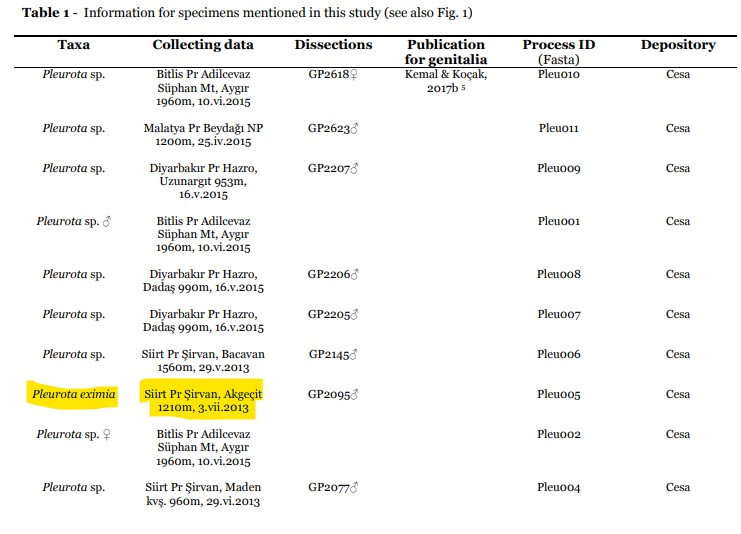 Fauna sites in Europe, only 3 Pleurot species seems to Turkey.