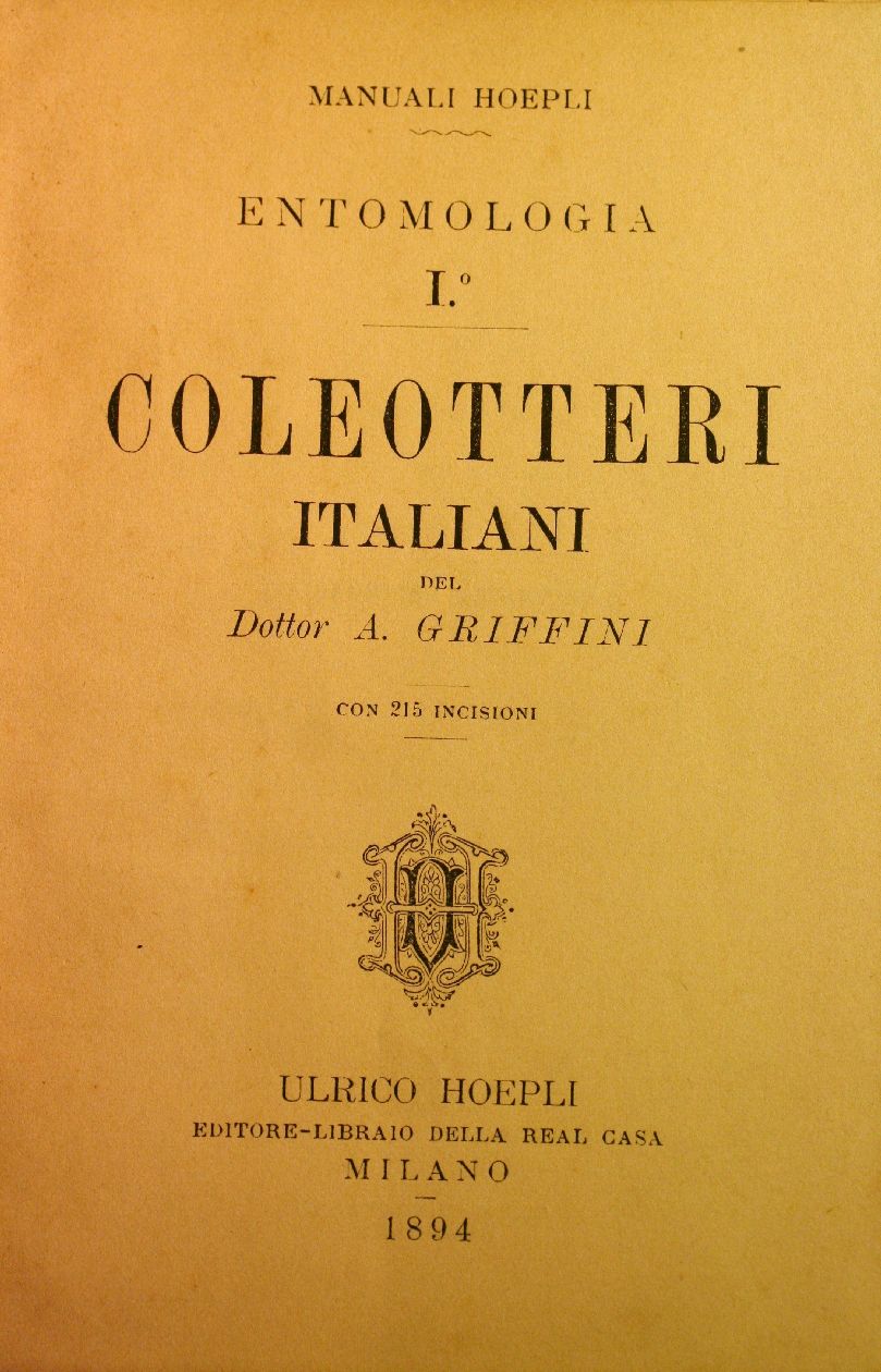 Sempre il Griffini, oltre allo splendido voume con tavole a colori, si occupò a fine '800 di redigere altri lavori entomologici, tra cui il libercolo sui coleotteri italiani nella serie dei manuali Hoepli.