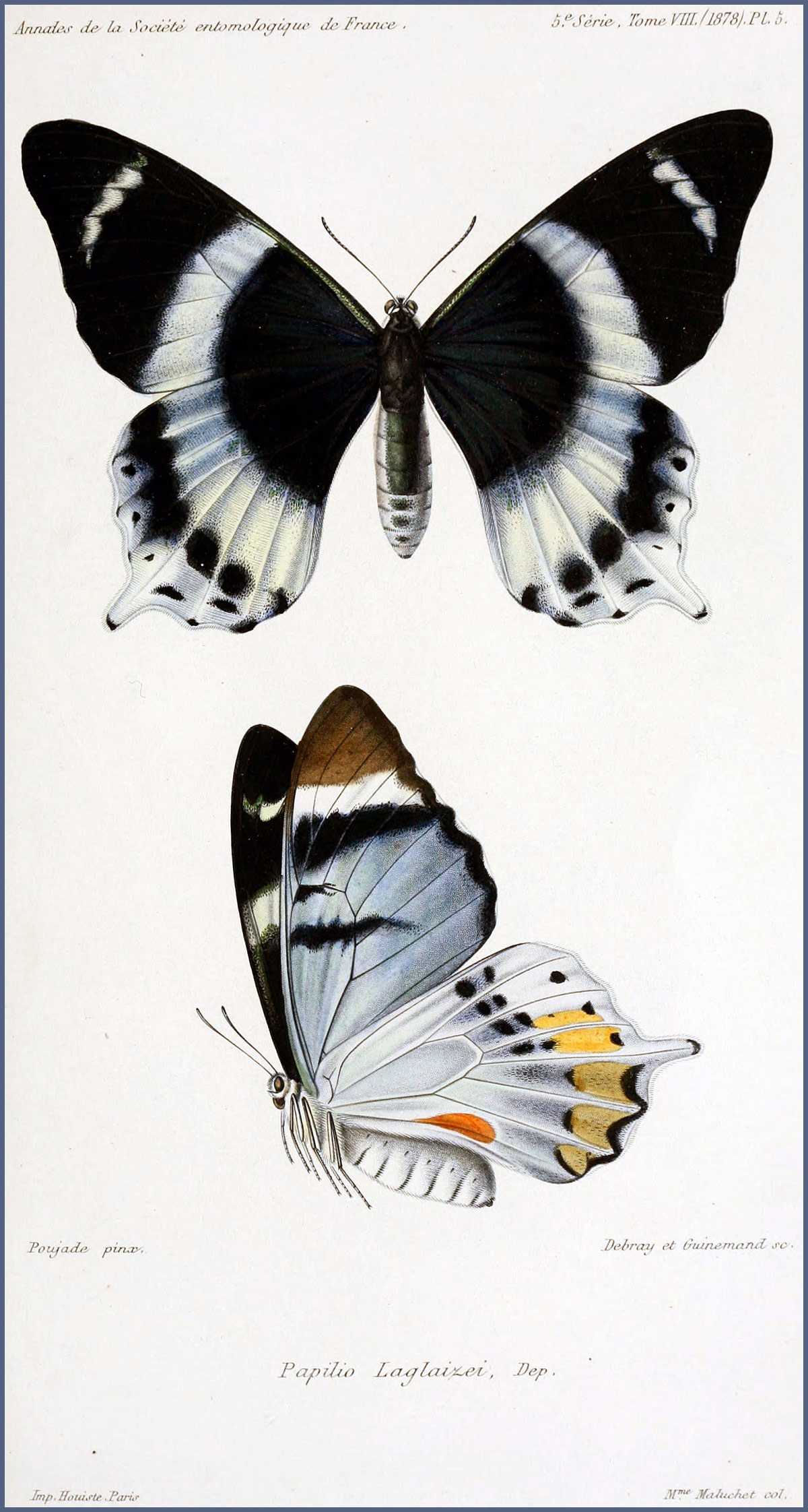 Disegnatore: POUJADE Gustav Arthur (...-1909). Preparatore presso il Laboratorio d'Entomologia del Museo di Storia naturale di Parigi.