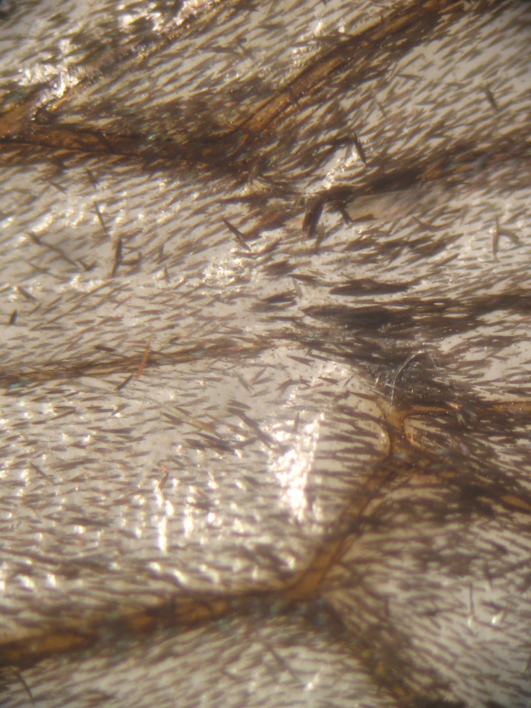 Le ali sono completamente ialine-trasparenti con piccole squame allungate su tutta la superficie delle ali ma che non la ricoprono se non in percentuale trascurabile come si vede ne particolare.