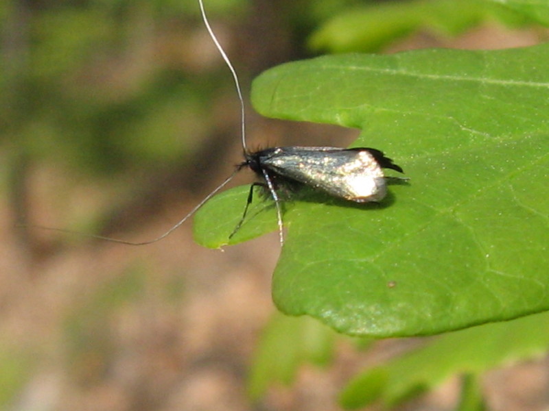 Su foglia di Quercus pubescens quella che pare una Adela viridella - Adelidae.