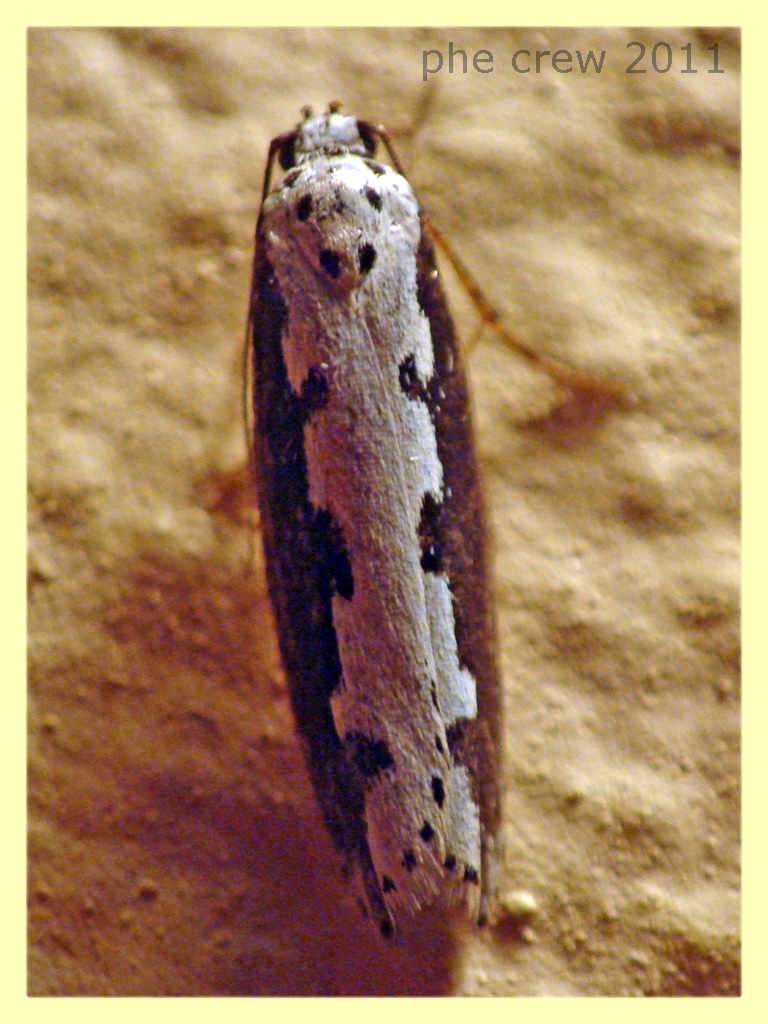 E' un Ethmiidae del genere Ethmia, molto probabilmente Ethmia bipunctella (Fabricius 1775). |