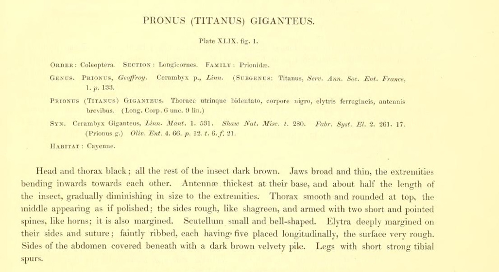Titanus giganteus (Linnaeus, 1771) da: Westwood, 1837 - Illustration of exotic entomology...