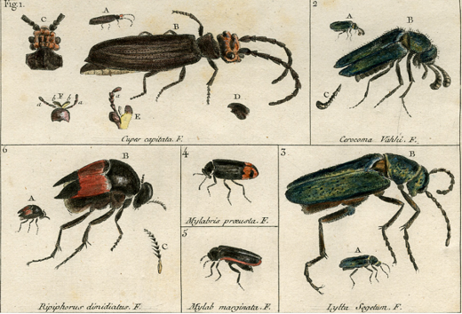 Sybilla ha scritto: Entomologo francese. Purtroppo sono riuscita a trovare solo quattro immagini e due sono davvero piccole. Il libro si intitola "Illustratio iconographica insectorum quae in musaeis parisinis observavit et in lucem edidit Joh. Christ. Fabricius, praemissis ejusdem descriptionibus; accedunt species plurimae, vel minus aut nondum cognitae, Paris: P. Didot, 1799-1804" , illustrazioni degli insetti, e qualche aracnide, collezionati nel Museo di Storia Naturale di Parigi. Ciao Elisa L'opera, composta da tre volumi, è interamente digitalizzata su BHL (Biodiversity Heritage Library). Le trenta belle tavole che la compongono si possono sfogliare e scaricare ad alta definizione. Trovi qui i tre volumi e le tavole.