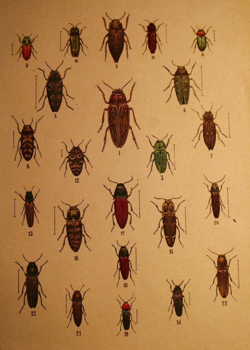 Gianfranco ha scritto: Tav. XII 27 Cantaride (Lytta vescicatoria). Di un bel colore verde brillante, comune in giugno sul frassino, sul sambuco e sul salice delle cui foglie si ciba. Contiene una sostanza acre e irritante (cantaridina); e perciò si raccolgono questi insetti, e seccati si polverizzano per fare vescicanti usati in medicina (mosche di Milano). La Cantaride ( Lytta vescicatoria), malgrado il nome comune, non è però un Cantharidae, bensì un Meloidae, che non credo interessi Fabrizio.