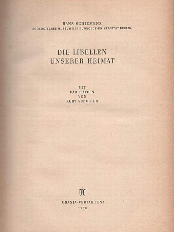 Frequentando i mercatini e i negozi di libri vecchi si trova spesso qualche cosa di interessante. Ultimamente proprio in una libreria di libri usati ho trovato un interessantissimo lavoro di Hans Schiemenz (entomologo del secolo scorso) sulle libellule. In esso sono riprodotti in 30 tavole raffinati acquerelli di Kurt Schuster sugli odonati presenti in Germania.
