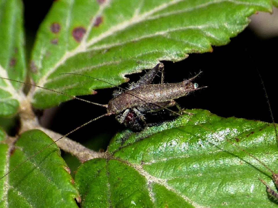 Fotografato oggi, lungo o meglio lunga visto che si tratta di una femmina 13 mm dal capo all'estremità dell'ovopositore. L'impressione, dettata dalla postura e dalle forme generali, è stata quella di trovarmi di fronte ad una Oecanthus più rustica, pelosetta e robusta