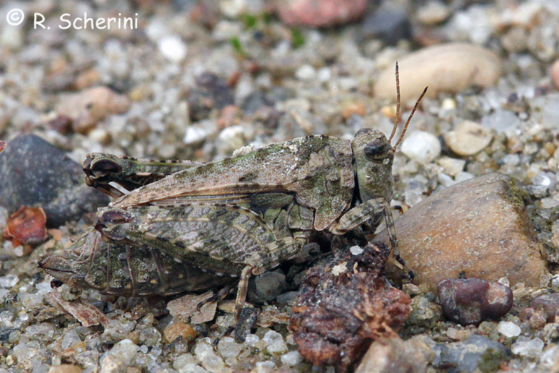 Ciao. I Tetrgidi sono molto complessi da identificare, persino quando si hanno gli esemplari in mano. Queste però mi sembrano tutte Paratettix meridionalis, una specie molto comune, soprattutto vicino alle sponde sassose o ghiaiose dei fiumi.