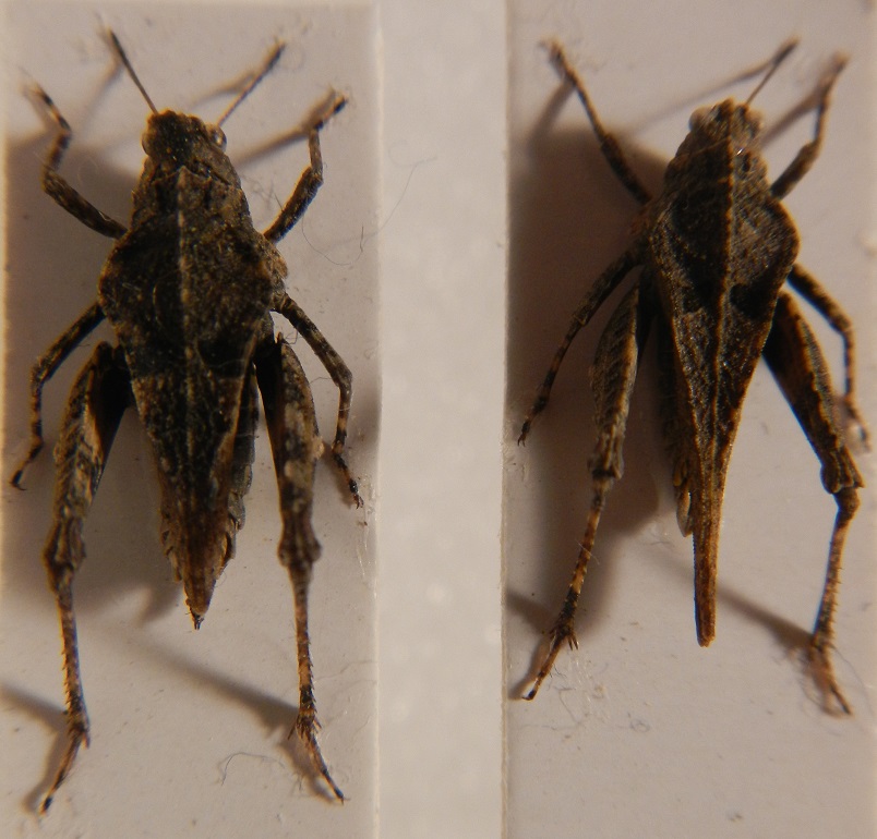 Aggiungo le foto di questo bel Tetrigide ancora assente sul forum. L'ho raccolto piuttosto numeroso sulla roccia nuda e coperta di scarsa vegetazione ripicola nella Vena del Gesso romagnola, specialmente presso distese di licheni ed erbette.