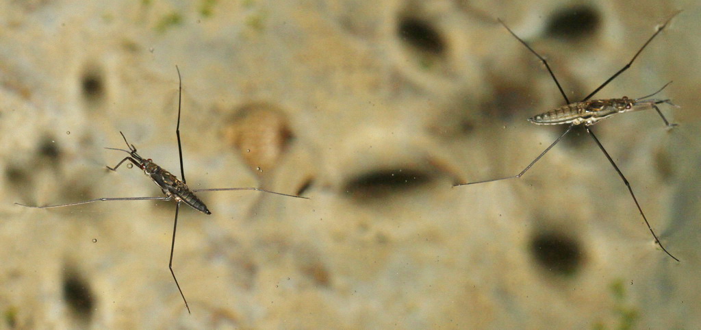 Ecco i gerridi fotografati ieri. Località: torrente Gentile, Camogli (GE), circa quota 150m. Lunghezza del corpo 12 - 15 mm