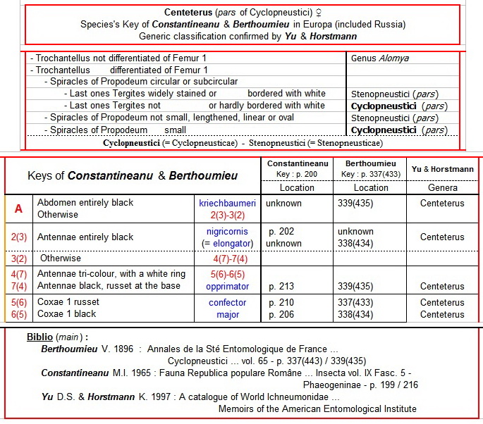 Centeterus (pars of Cyclopneustici) female - Species's Key of Constantineanu & Berthoumieu, in Europa (included Russia) - Generic classification confirmed by Yu & Horstmann - Ichneumonidae