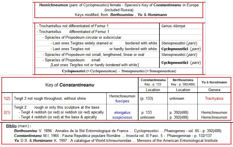 Hemichneumon (pars of Cyclopneustici) female - Species's Key of Constantineanu in Europa (included Russia) - Keys modified, from Berthoumieu , Yu & Horstmann - Ichneumonidae