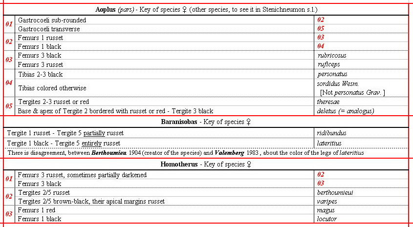 Hymenoptera Ichneumonoidea Ichneumonidae Ichneumonini Oxypygi Cratichneumon Stenichneumon Aoplus rubricosus ruficeps sordidus personatus theresae deletus analogus Baranisobas ridibundus lateritius Homotherus berthoumieui varipes magus locutor