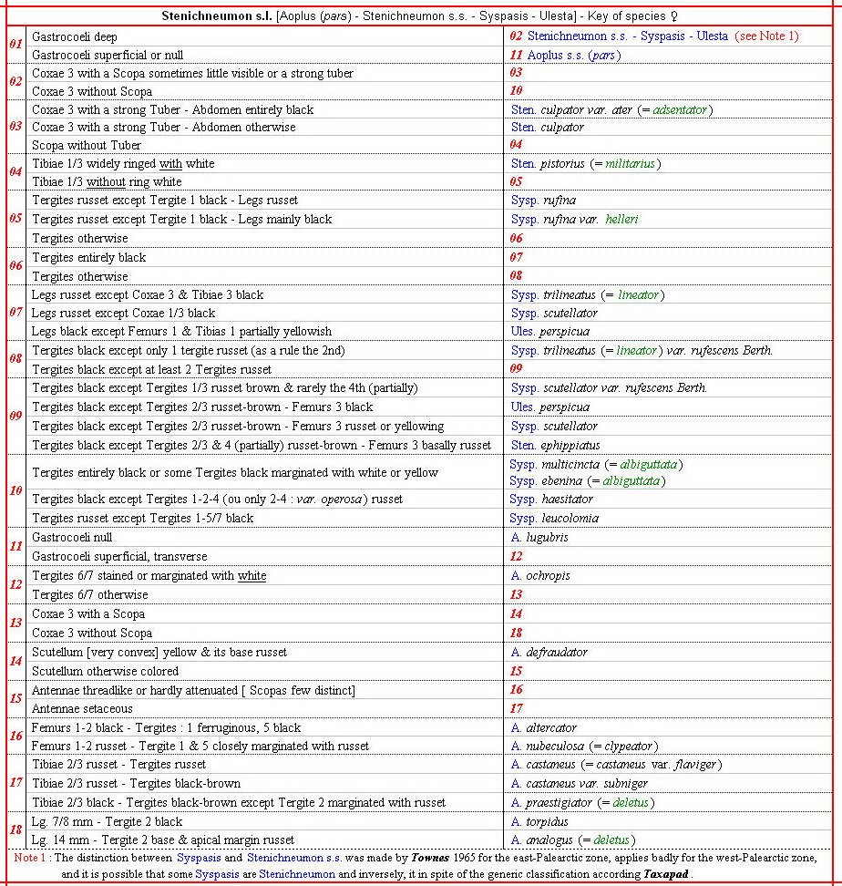 - - - OXYPYGI - ma clé - Gen. Stenichneumon s.l. - Image - Forum & Flickr.jpg