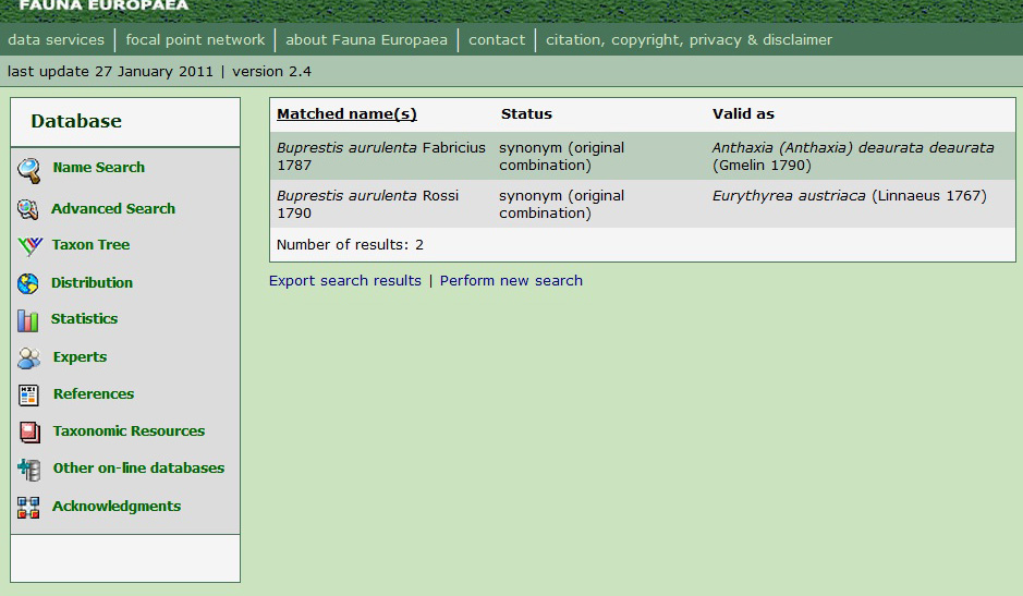 però non si spiega come mai, digitando Buprestis aurulenta nella pagina preposta alle ricerche, si ottenga questa schermata: