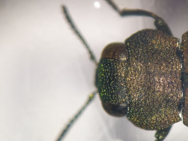 Altro buprestide per il quale ho bisogno di una mano. Un maschio (trovati 3 insieme) di Melanthaxia sp., molto più piccolo di quelle che trovo solitamente (5 mm scarsi). Non riesco a venirne a capo con le chiavi :? Dalle fotografie non si vede forse, ma la fronte è completamente glabra (forse solo con alcuni peletti davvero minuscoli nella parte più avanzata). Quota 1100 m, a bordo di una strada forestale in faggeta.