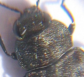 Il vertice del capo tra gli occhi è largo circa come un occhio visto dal dorso o molto più largo (circa il doppio)? Per vederlo devi piegare un po' il capo in avanti, perchè così è coperto dal margine anteriore del protorace.