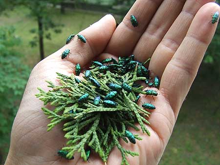 It is something that get the Thuja dead in my town (Cluj-Napoca, Romania). I was investigated some of them, but no tracks of attack or beetles on them. I think it is other factor which get them dry. I wish Lamprodila festiva to come as a pest here too. Here it is still a rare insect, with only some records in the south-western Romania.