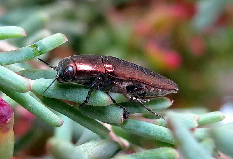 Con las calores de este verano, ya estamos a 40º en Sevilla, empiezan a volar las Sphenoptera, como esta S. pilosula que estaba sobre su planta nutricia: Suaeda vera.