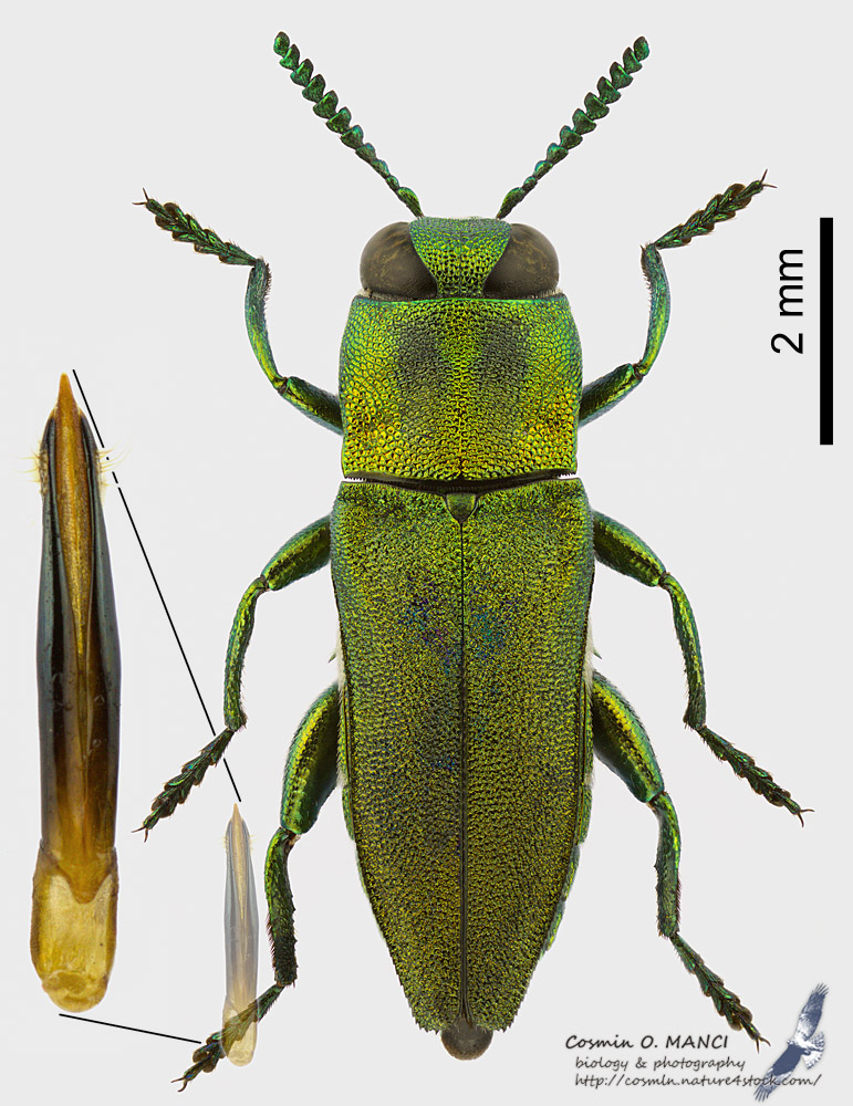 Indeed, it is a extremly welldone picture for a very rare species. I am in work to make a catalogue of the Buprestids of Romania. In the same time I am in progress to finish the Buprestidae of Romania identification guide (which will be in Romanian and with only b/w drawing - these are the conditions of the printing house :( ). The catalogue will be with color pictures, I try to convince Cosmin to participate as the second author, but he is involved in many other projects and is very slow. Now I try to remake many pictures, but unfortunately my collection is saved after a flood and a mould attack (I killed the mould but it is rather difficult to clean it from the beetles - some of my beetles belong to the subspecies pulverulentus :cry: ). I will get some time to repost better pictures.