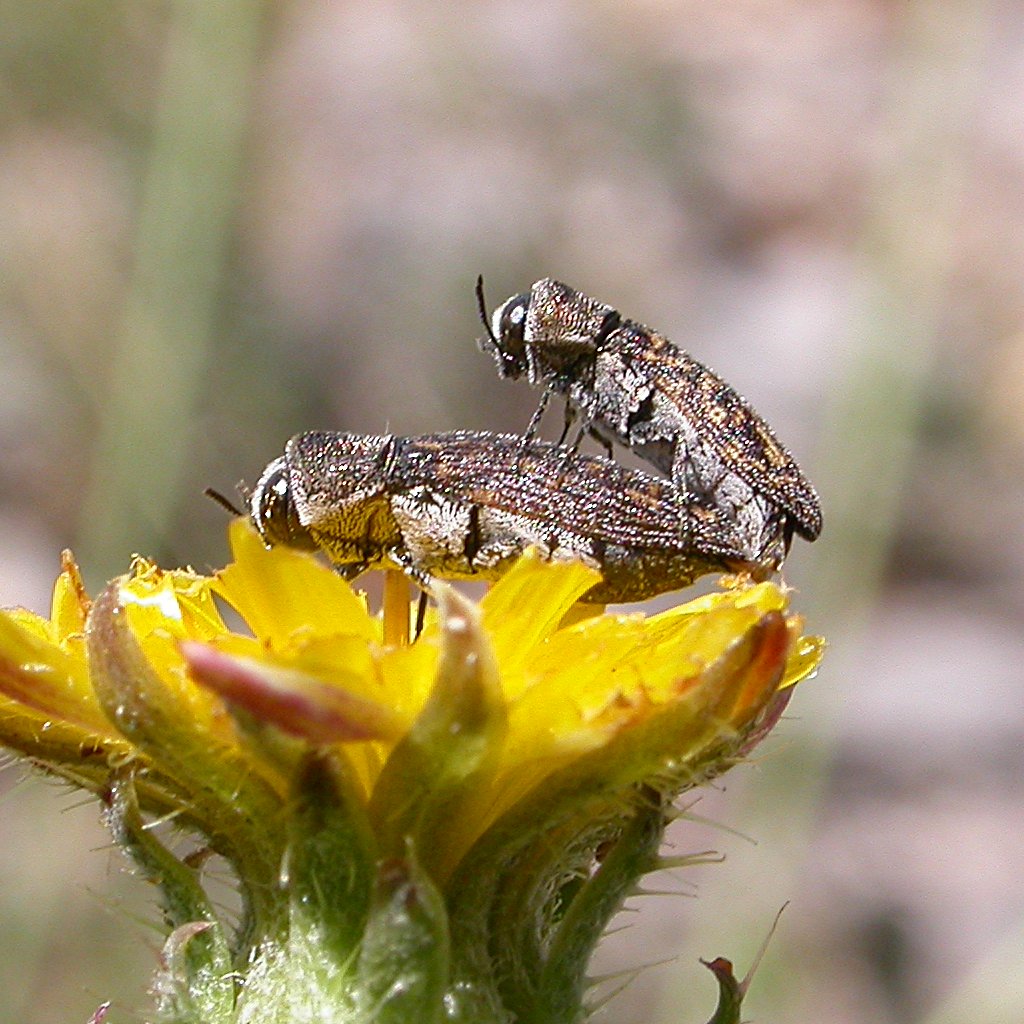 Questa Acmaeoderella, uno dei Buprestidi più comuni in Italia, uno dei pochi rinvenibili anche in piena estate nelle più calde e secche località di pianura e collina, era presente con vari esemplari in accoppiamento sui pochi fiori rimasti.